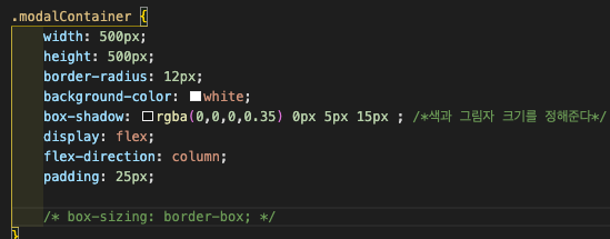 container가 width 500, height 500을 가진 정사각형 사이즈를 만들었고 padding 으로 25px 를 주었다. 이때 box-sizing 설정이 주석처리 되어있기 때문에 어떤 사이즈를 포함하는지 아래를 보자